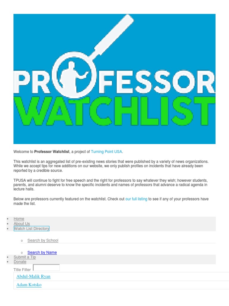 Leftist College Professors Watchlist Pdf Antisemitism Republican