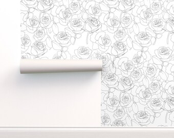 Black White Garden Rose Removable Wallpaper Wallflora
